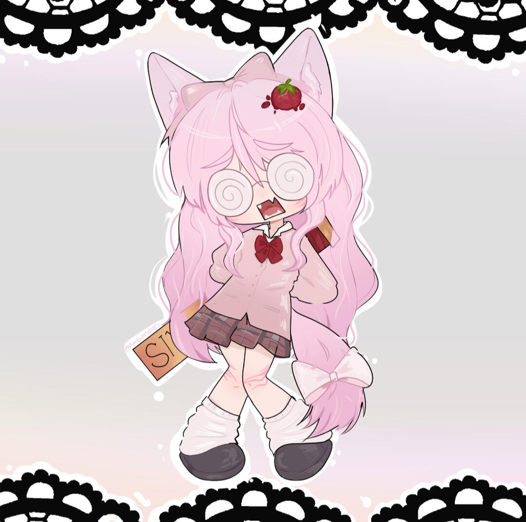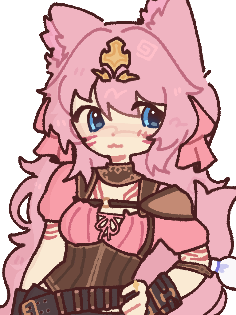 | S'anna stands at 4'10 with a mane of pastel pink locks. Her standout features are her clan markings, which stretch over various parts of her body, her bright aquamarine eyes, and her long fluffy tail with a bow adorning it. She also has a scar on the right side of her face, and one upon the left side of her neck. S'anna changes her hairstyle rather frequently. Her original hair type is curly but it is not uncommon for her to have any number of different hairstyles that she prefers to pair with her various homemade outfits. She also has a tendency to flock toward peach colored makeup. With a constant light shine to her eyelids and a peachy flush to her cheeks. She revels in the subtle makeup that accentuates her features. |